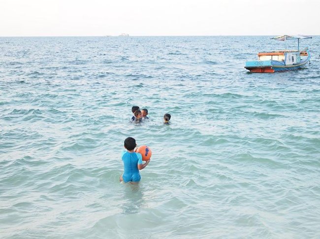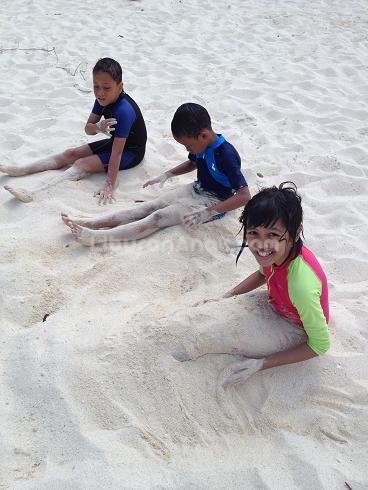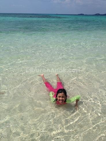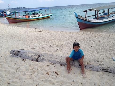 Hari itu karena hari Sabtu pulau-pulau lebih ramai dari sebelumnya. Kami harus berbagi Pulau Pasir yang kecil dengan beberapa rombongan lain. Untungnya anak-anak lebih tertarik berenang-renang di sekitar pulau, sementara rombongan lain kebanyakan foto-foto di pulau saja.