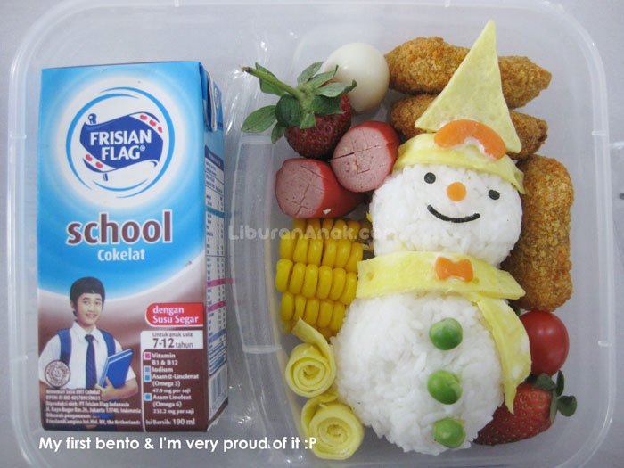 Sudah beberapa kali, Rashad, anak pertama saya pulang ke rumah sambil membawa goody bag dari pesta ultah temannya di sekolah yang berisi nasi dan lauk pauk sehat dalam bentuk Bento. Awalnya sih saya hanya mengagumi kreatifitas orang yang membuat Bento tersebut…tapi lama-lama, kenapa saya jadi merasa bersalah banget ya terhadap keadaan bekal yang selalu saya siapkan untuk dimakan Rashad di sekolah?