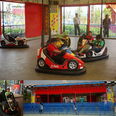 Melihat bom-bom car (disini namanya Mobil Jeger-Jeger:p), kiddos#1 langsung minta segera main, namun sayangnya karena tingginya belum sampai, ia harus menggunakan versi mini untuk anak di area Tropicalia.