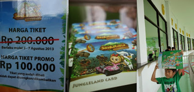 Kami pergi berlima, tiga anak dan dua dewasa. Oma yang sudah lansia mendapatkan discount 50%, sedangkan saya, kiddos dan koko Nuel membayar Rp 100.000 per orang. Di Jungleland, peta tidak dibagikan pada saat membeli ticket, namun kita harus berjalan ke information center untuk mendapatkan peta. Ohh please tell me why.. Seharusnya peta dibagikan di booth ticket supaya ga ribet.