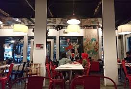 Desain interior Comic Café ini sangat menarik untuk dinikmati bersama anak-anak tercinta. Mulai dari meja-mejan yang dilukis dengan tahap pembuatan sketsa tokoh komik, sampai aksi figure & poster-poster cupilkan film seperti Thor, Wonder Women, Batman, Superman, Spiderman, dan lainnya tergantung di atas langit-langit café.