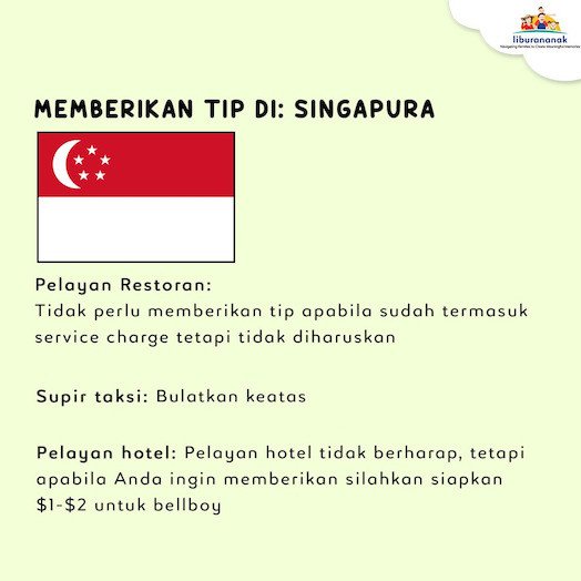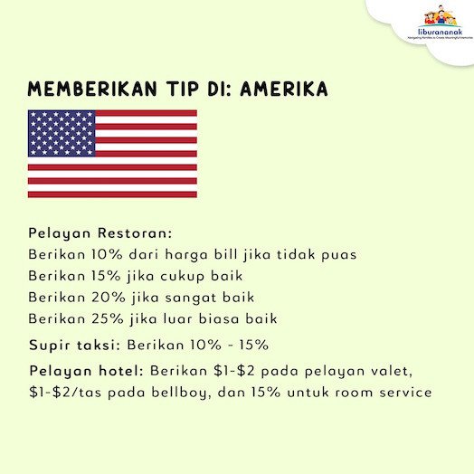 Jika tidak ada service charge, berikan tip sebesar 10% dan 15% apabila service yang diterima baik