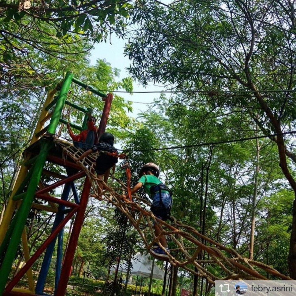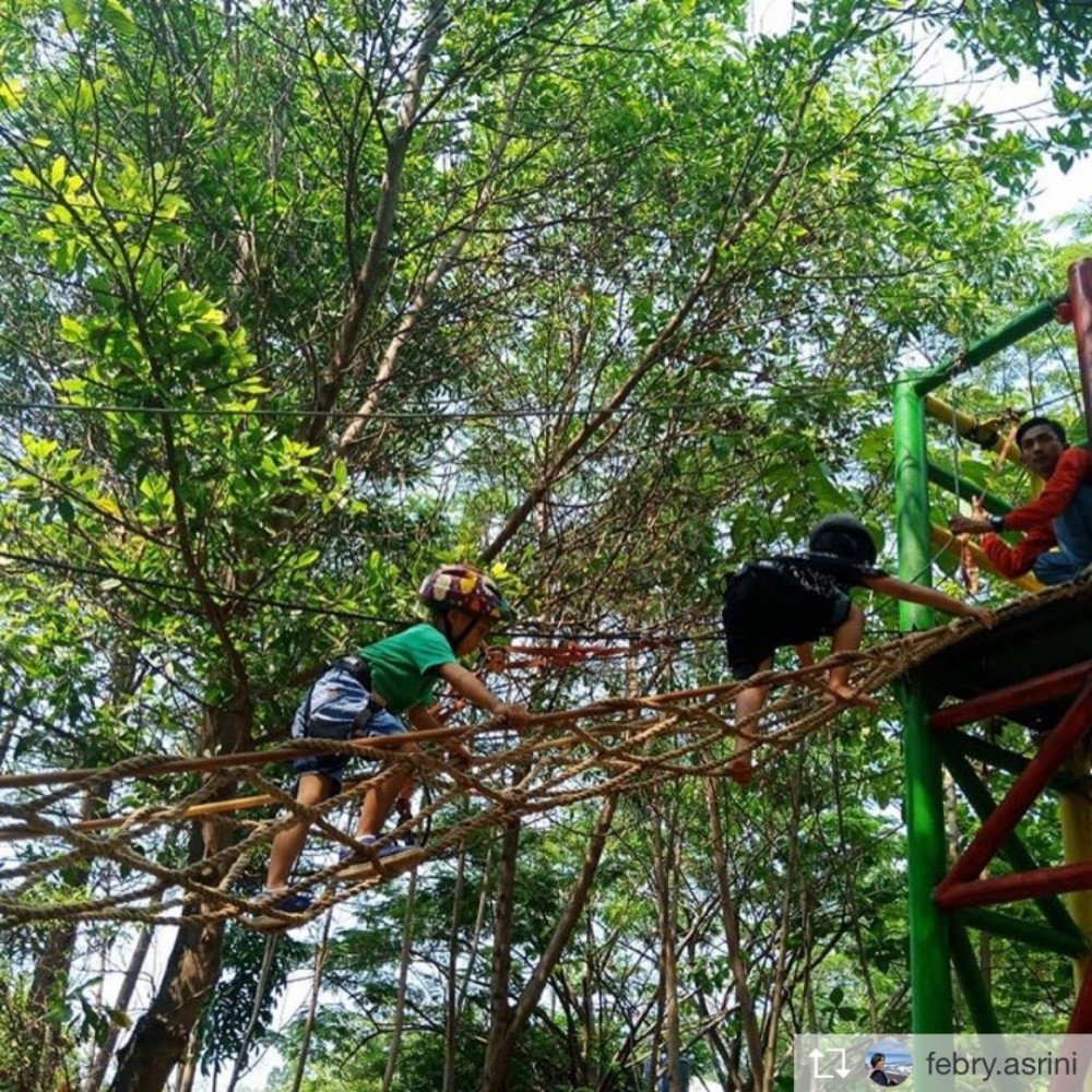 Tempatnya kid friendly dan adem karena banyak pohonan. Sayangnya kita datang siang hari, baiknya kalo kesini sorean. HTMnya 50rb sudah termasuk makan soto,dan wahananya free (kecuali naik bebek2an dan speed boat). Anak anak bisa main sama kelinci dan rusa. Selain itu ada kereta mini dan trampolin yang juga free. Yang lebih happy lagi, ada wahana outbond yang cucok buat anak karena adem dan safety. Gak cuma itu, ada flying fox juga untuk anak dewasa. Tante @nika_nyik2 dan mb @marsansewahyusetia aja akhirnya mau cobain, walaupun jalurnya diatas danau. .