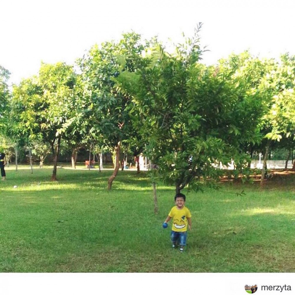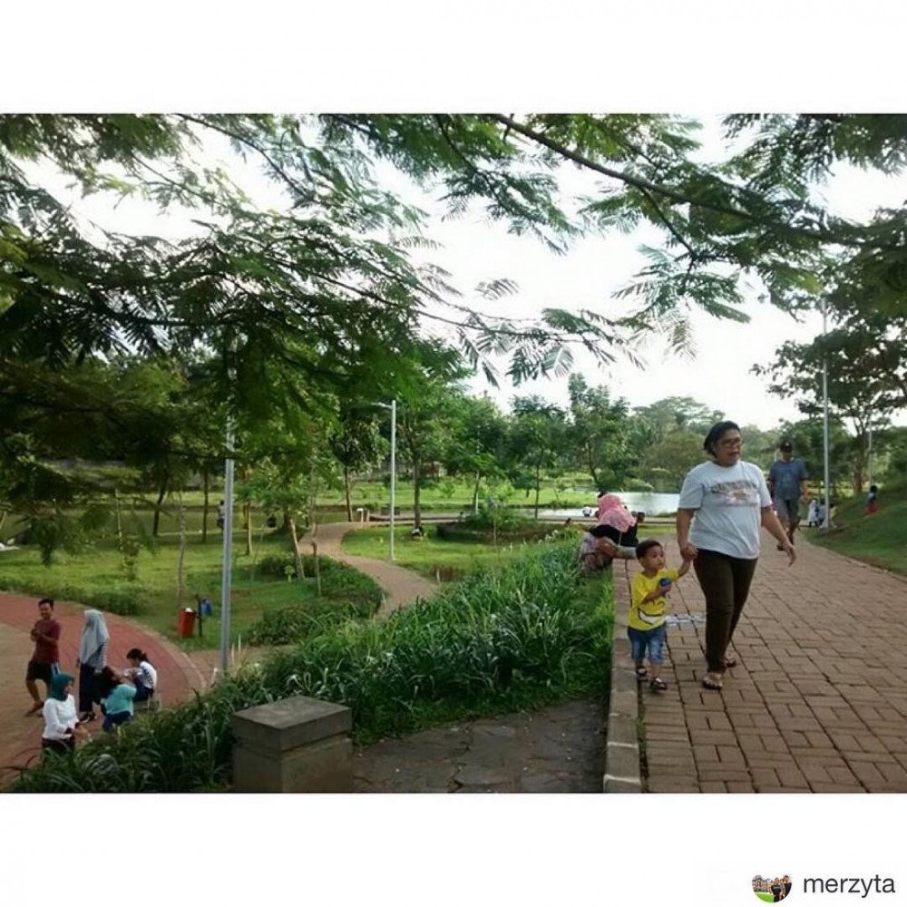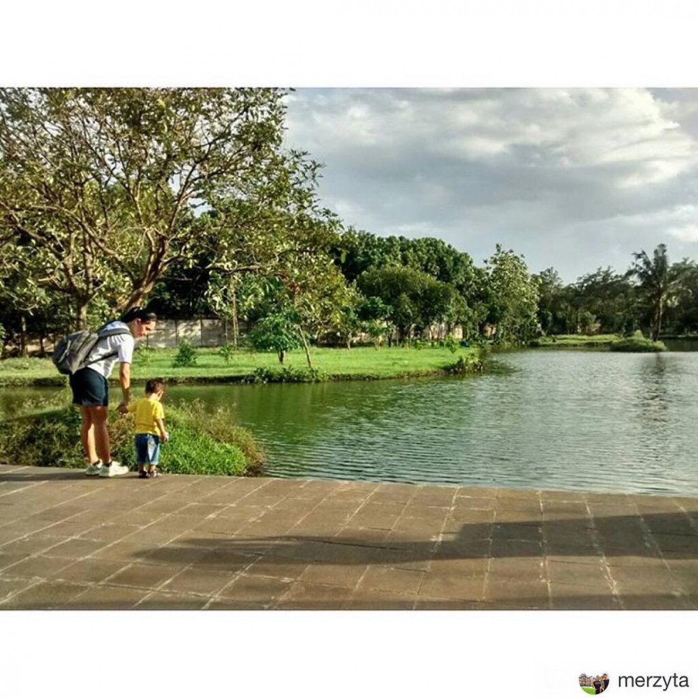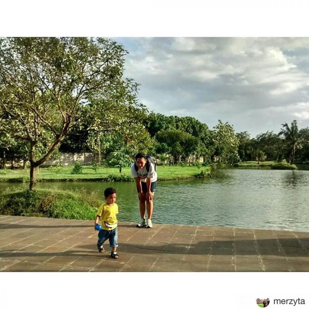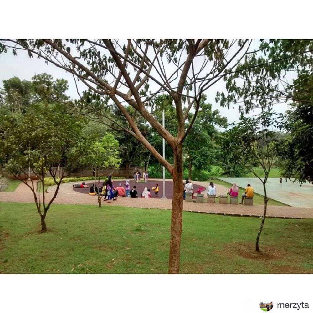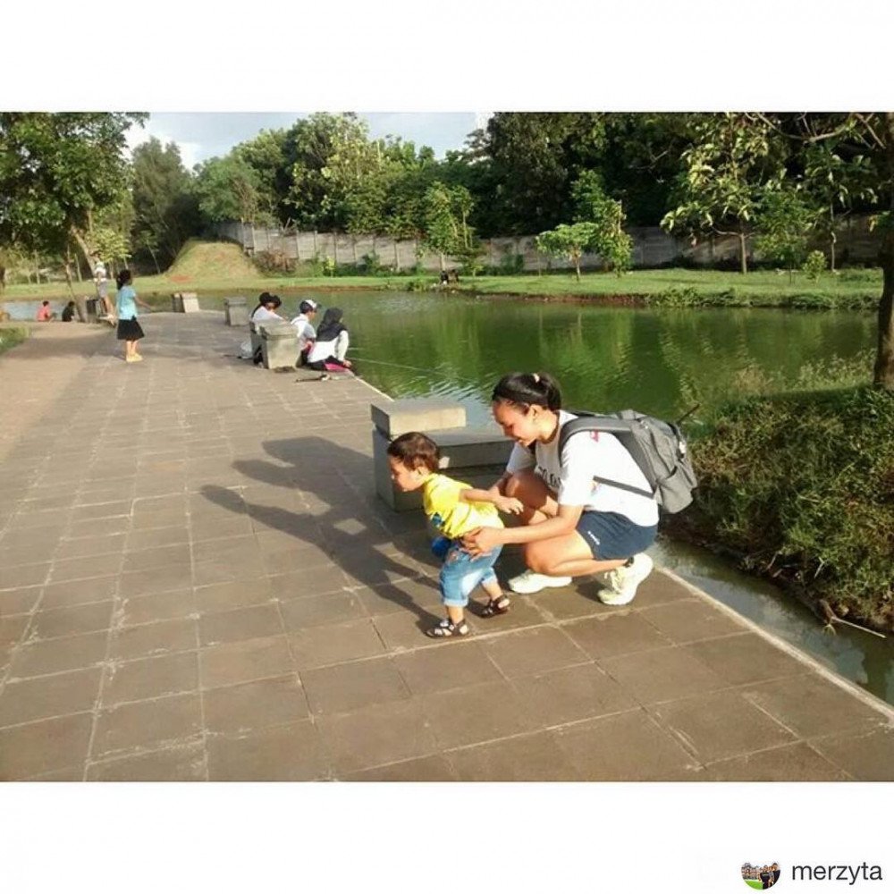 Semingguan kemarin nyaris tiap sore ke sini Dilalah pas cuaca selalu cerah setelah sebelumnya ujan terus. Jarak sekitar 4 kiloan dari rumah, paling 10-15 menitan naik motor bawa Kata. Tamannya luasss banget, jauh lebih luas dari #tamanmahoni yang gw posting sebelum ini. Area berumputnya banyak dan tertata. Ada sarana main anak, macam ayunan dan 2 lapangan (mini) bola. Ada danaunya juga. Tempat sampah yang disediain cukup banyak, bersih tamannya. Gak usah khawatir sama tempat duduk-duduk, di rumput juga jadi, ga ada larangan menginjak rumpuk kok. Yang paling bikin seneng juga ada jogging track-nya!! Jadi sesekali sambil nyokap nemenin Kata main, mamanya Kata bisa lari-lari ketjil. Dibanding Taman Mahoni, Kata dan gw lebih seneng ke sini, agak sedikit lebih jauh tapi gapapa soalnya jauh lebih nyaman.