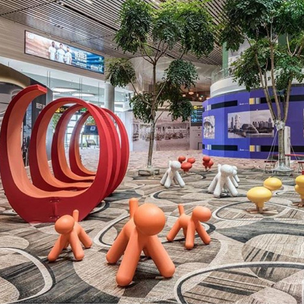 Jalan-jalan sebentar yuk ke Terminal 4 @changiairport Singapura.Playground-nya out of the box banget ya. Menurut kabar, terminal 4 ini adalah terminal yang paling “hijau” di antara terminal-terminal lainnya. Semua pohon & tanaman di dalamnya aseli lhoo, bukan sintetis! Kebayang ya perawatannya