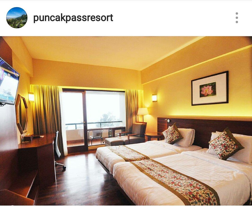 Ratenya mulai dari IDR 900.000’an, tersedia kamar superior, deluxe, suite junior, sampai studio suite. Fasilitas yang dimiliki hotel ini juga langkap, mulai dari 4 restoran yang dimilikinya dengan spesialisai masakan yang berbeda, pooll, spa, serta taman bermain anak. Pemandangan Puncak Pass Resort juga keren, dari kejauhan kita bisa melihat pegunungan dikelilingi pohon-pohon yang membuat mata segar.