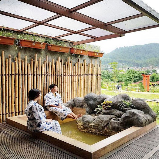 Berada di sini, Teman Traveler akan merasa seolah-olah sedang berada di Jepang. Mulai dari sajian makanan, bentuk bangunan, hingga lingkungannya semua terinspirasi dari kondisi di Negeri Sakura.