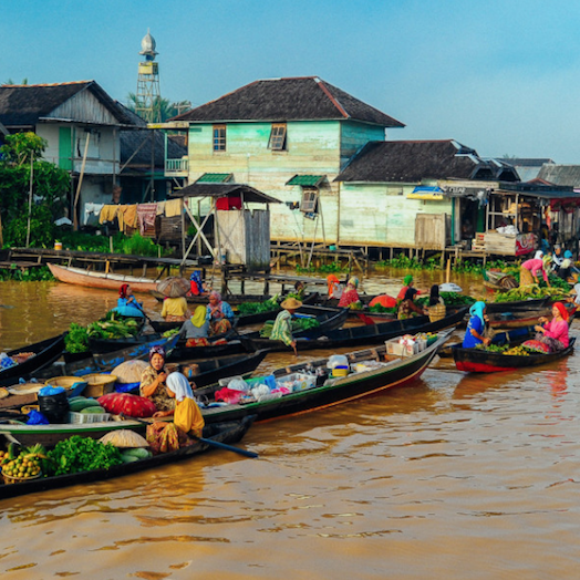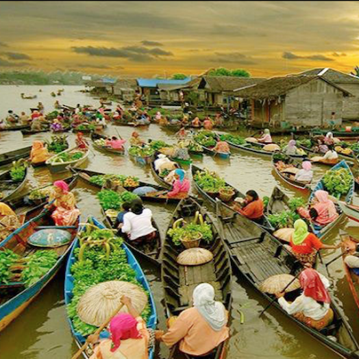Di sepanjang pesisir aliran Sungai Martapura Lokbaintan terlihat konvoi perahu menuju lokasi pasar terapung. Perahu ini milik pedagang dan petani yang akan memasarkan hasil kebun mereka. Mereka berasal dari berbagai anak Sungai Martapura, seperti Sungai Lenge, Sungai Bakung, Sungai Paku Alam, Sungai Saka Bunut, Sungai Madang, Sungai Tanifah, dan Sungai Lok Baintan.