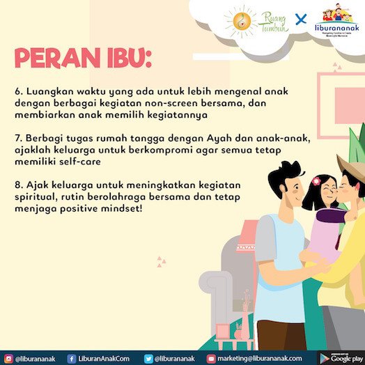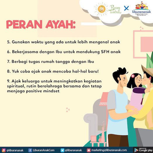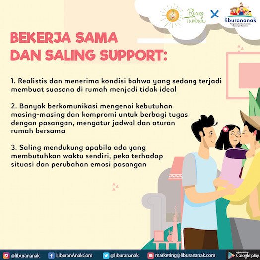 - Bekerja sama dengan Ayah untuk membuat jadwal dan rutinitas baru sesuai dengan kondisi, lalu komunikasikan ke anak