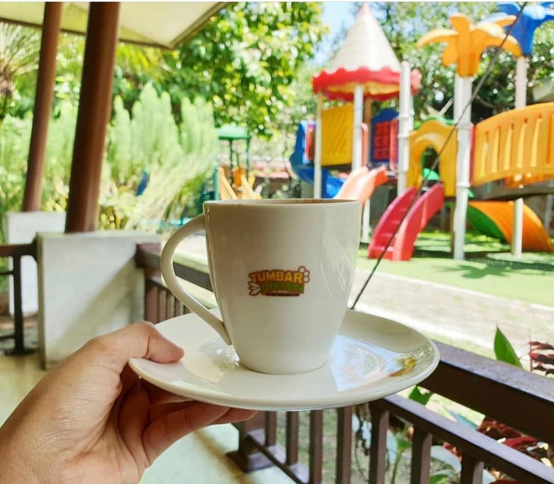 Resto ber-playground dengan latar belakang gemericik air dari aliran sungai di dekatnya: @tumbarjinten di daerah Sentul, Bogor.