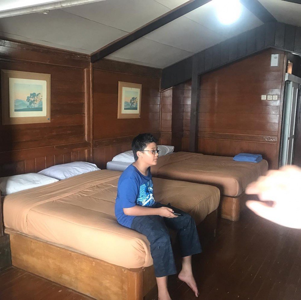 Ada juga bungalow di atas tanah seperti biasa, dan ada yg hanya 1 kamar, ada juga yang beberapa kamar untuk beberapa keluarga. Semuanya menghadap ke laut, tapi yang paling kerasa lautnya ya si bungalow rumah panggung itu..karena teras belakangnya pun langsung menghadap ke laut..Enaak banget sore duduk-duduk santai abis mandi setelah lelah bermain dan makan cup mie instan