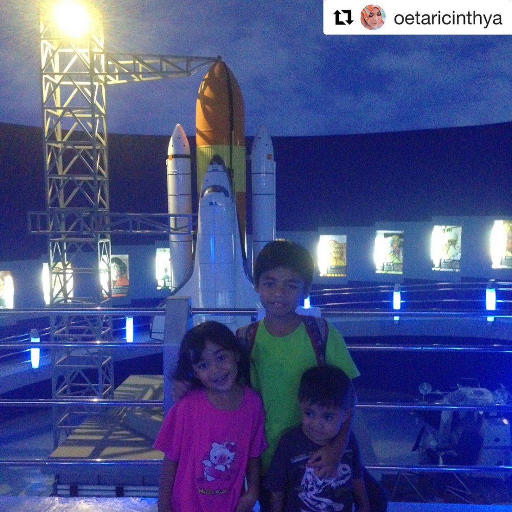 Salah satu wahana menarik di TMII utk anak-anak mulai mengenal dunia Antariksa. Ada Planetarium-nya juga, tapi ya gak sebesar & secanggih di Planetarium Jakarta, tapi lumayan lah utk anak-anak karena ruangan planetarium-nya memang gak terlalu besar Apalagi yang bagian teater 4 dimensi, seru bangettt!!