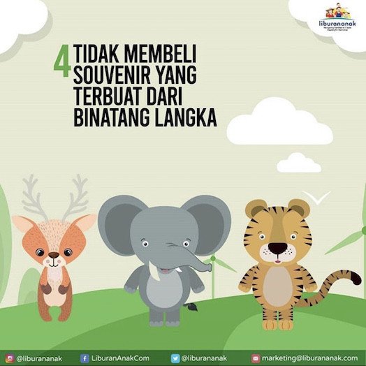 4. Tidak membeli souvenir yang terbuat dari binatang langka, seperti gading gajah, cangkang penyu atau kulit binatang.... let’s teach our kids to save the endangered animals!