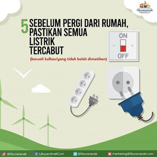5. Sebelum pergi, check semua listrik ya sudah dicabut atau belum, save energy and save money! Kecuali kulkas yaaa nanti pada basi semua