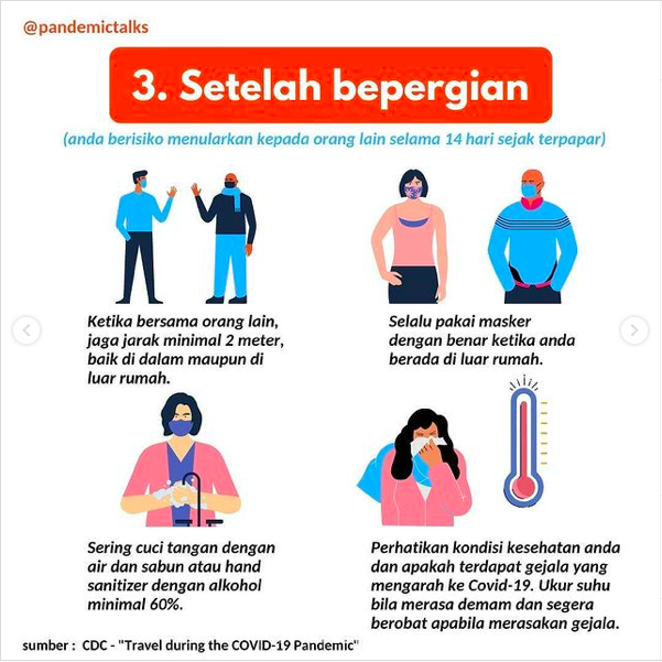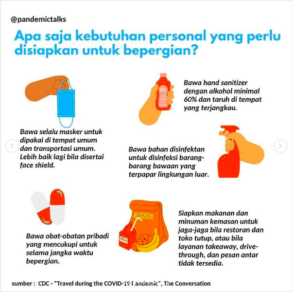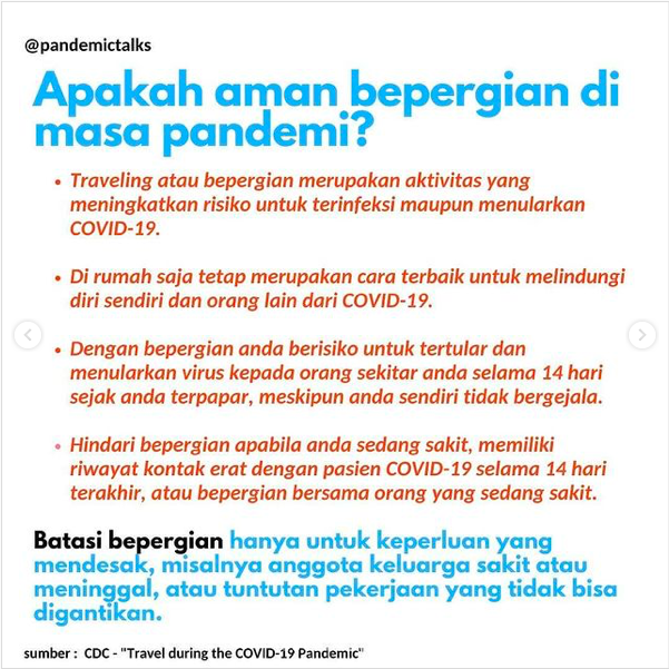 Ingat, usahakan berpergian untuk kegiatan esensial saja seperti bekerja dan ada urusan mendesak yang memaksa kita harus berpergian.